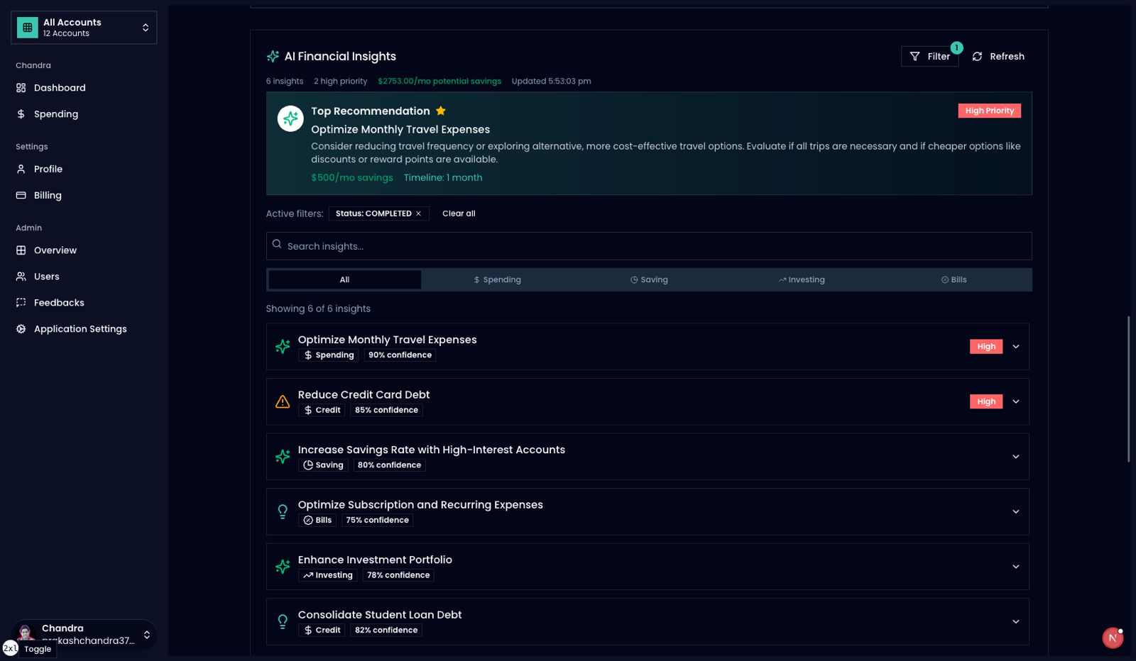 We were tasked with building the 'OS for Money'—a secure, fast, and intelligent layer that sits on top of all your financial institutions. The challenge was making sense of messy transaction data and turning it into clear lifestyle insights.